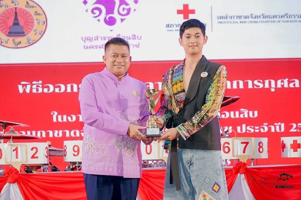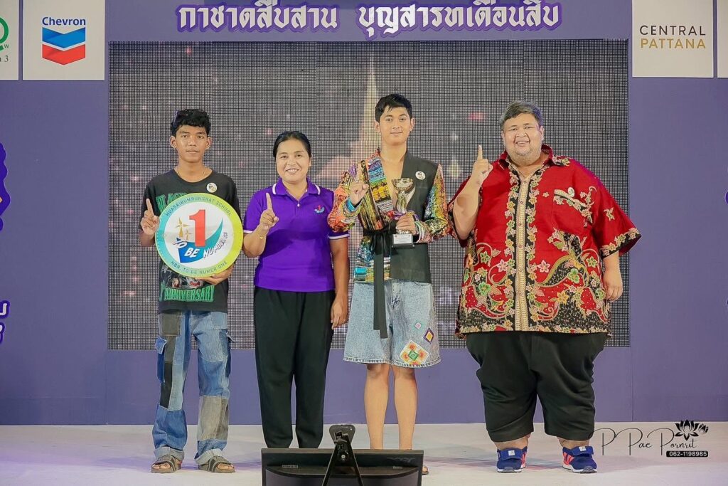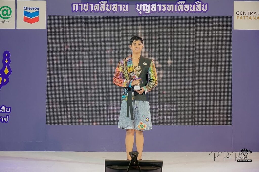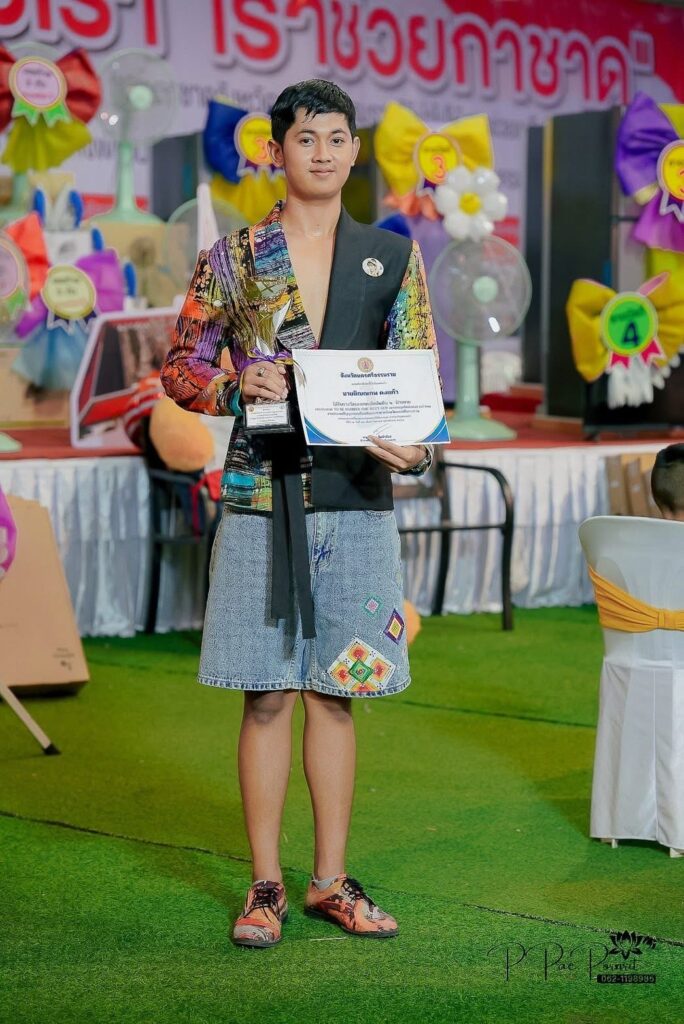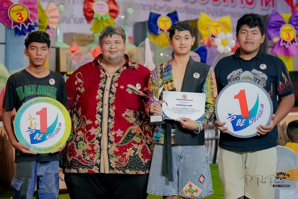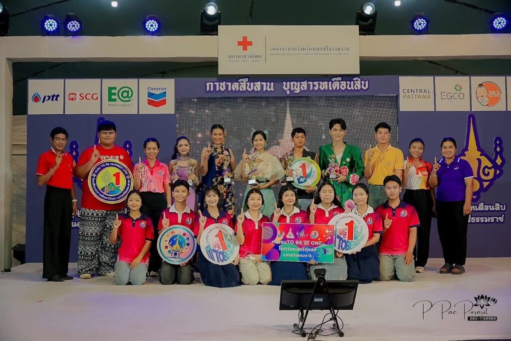 จากการประกวด TO BE NUMBER ONE NEXT GENT เยาวชนยุคใหม่แต่งกายผ้าไทย ได้รับถ้วยรางวัลจากท่านสมชาย ลีหล้าน้อย ผู้ว่าราชการจังหวัด ณ เวทีกลางงานเทศกาลสารทเดือนสิบ โดย ครูเสรีวรรธน์ ธนาวุฒิ และ ครูชลิดา นิ่มทอง ครูที่ปรึกษาชมรมทูบีนัมเบอร์วัน ผู้ฝึกซ้อม