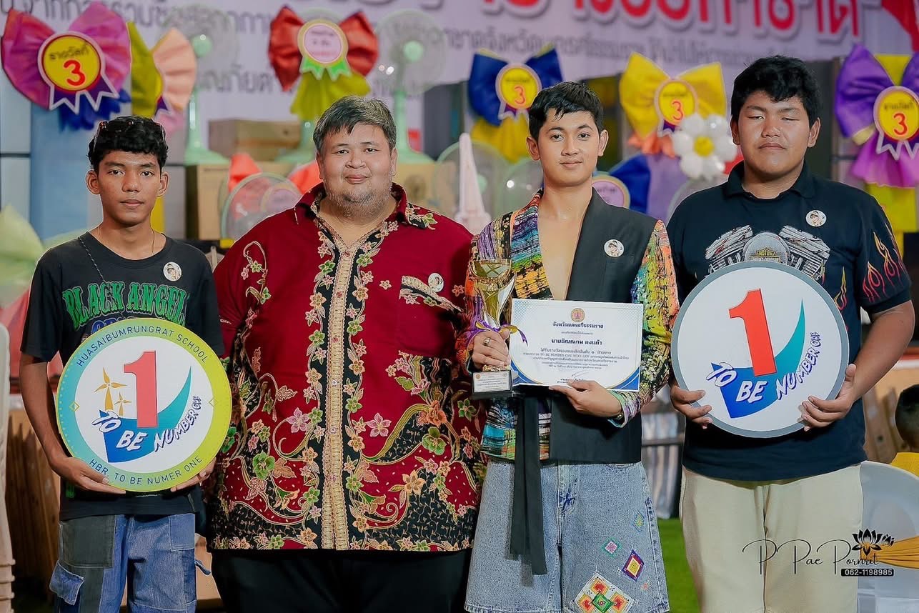 จากการประกวด TO BE NUMBER ONE NEXT GENT เยาวชนยุคใหม่แต่งกายผ้าไทย ได้รับถ้วยรางวัลจากท่านสมชาย ลีหล้าน้อย ผู้ว่าราชการจังหวัด ณ เวทีกลางงานเทศกาลสารทเดือนสิบ โดย ครูเสรีวรรธน์ ธนาวุฒิ และ ครูชลิดา นิ่มทอง ครูที่ปรึกษาชมรมทูบีนัมเบอร์วัน ผู้ฝึกซ้อม