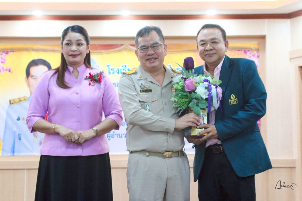 และท่าน ผู้ช่วยศาสตราจารย์ประกอบ ศรีจันทร์ ตัวแทนคณะกรรมการสถานศึกษาขั้นพื้นฐาน โรงเรียงเรียนก้างปลาวิทยาคม กล่าวแสดงความยินดี