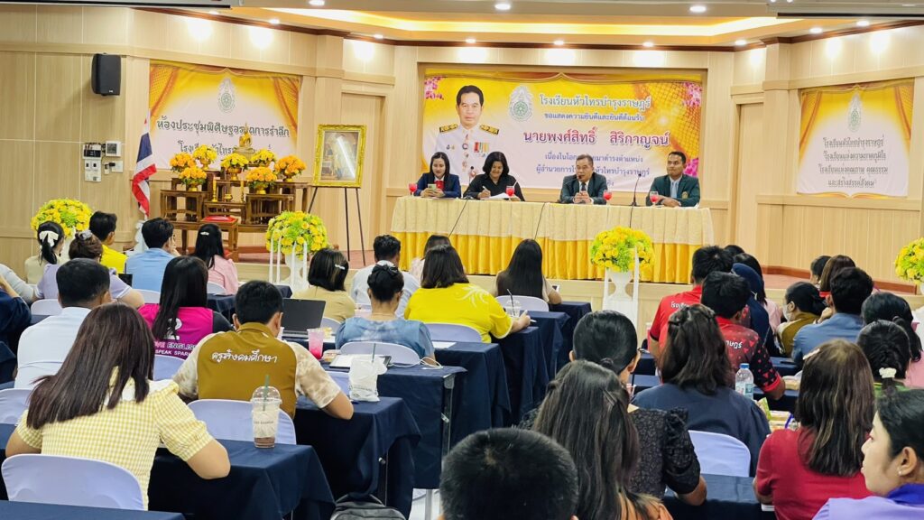 พร้อมด้วยคณะครูและบุคลากรทางการศึกษา ได้ดำเนินการประชุมครูและบุคลากรทางการศึกษา ณ ห้องประชุมพิศิษฐอรรถการรำลึก โรงเรียนหัวไทรบำรุงราษฎร์