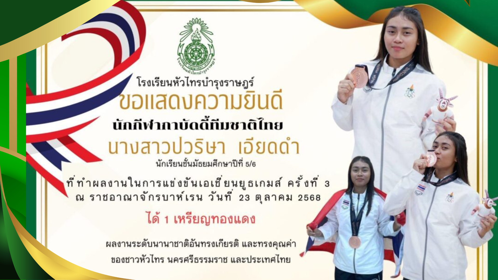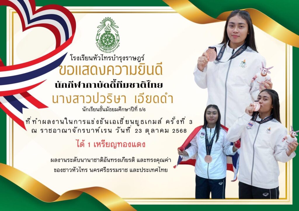 ณ ราชอาณาจักรบาห์เรน วันที่ 23 ตุลาคม 2568 ได้ 1 เหรียญทองแดง