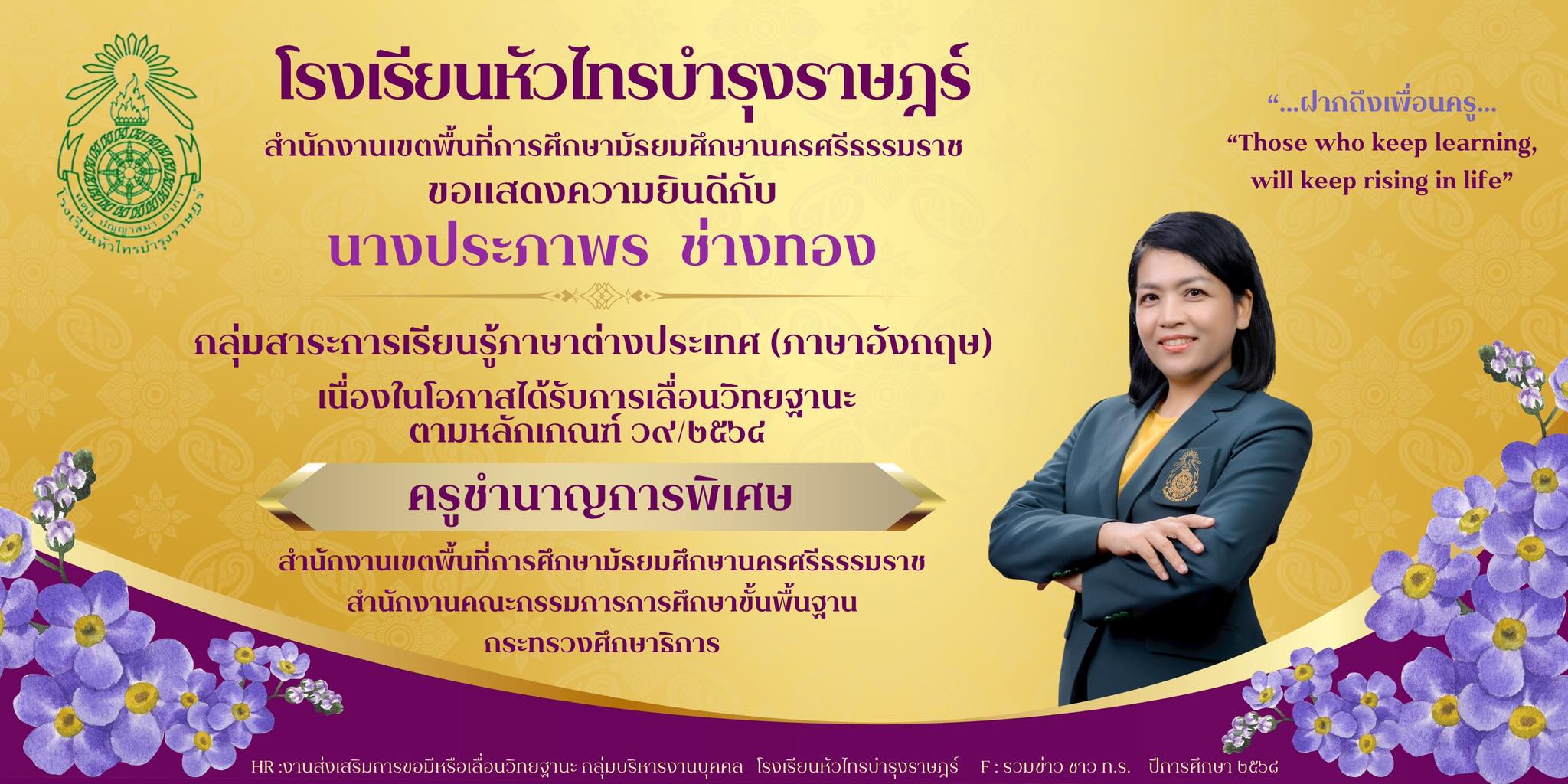เนื่องในโอกาสได้รับการเลื่อนวิทยฐานะเป็น ครูชำนาญการพิเศษ