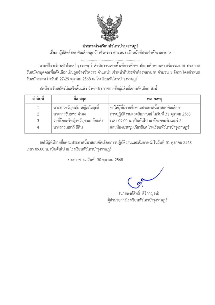 รับสมัครระหว่างวันที่ 27-29 ตุลาคม 2568 ณ โรงเรียนหัวไทรบำรุงราษฎร์