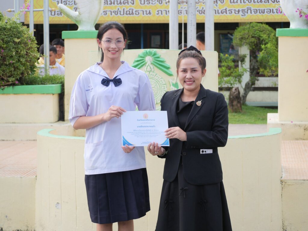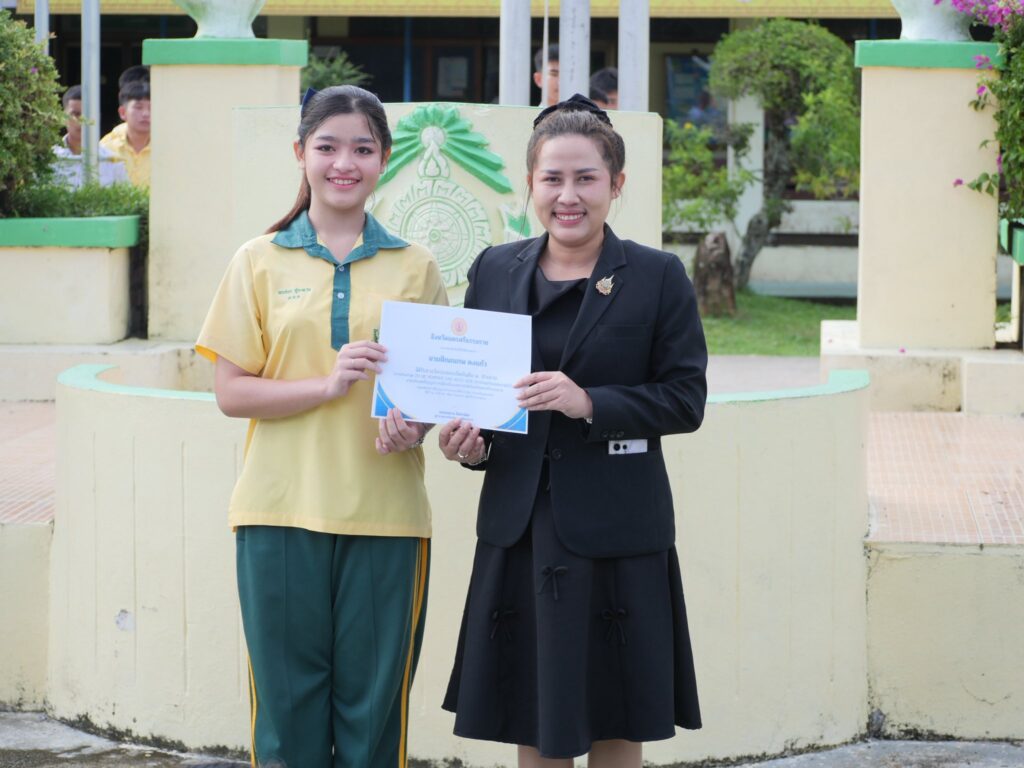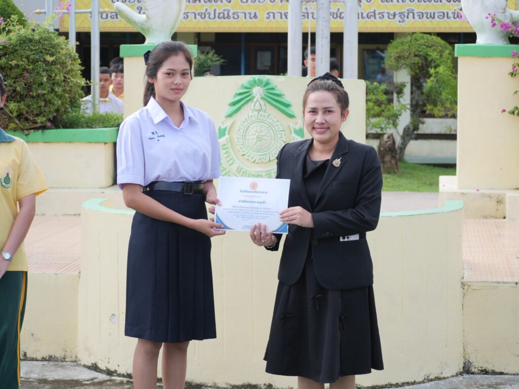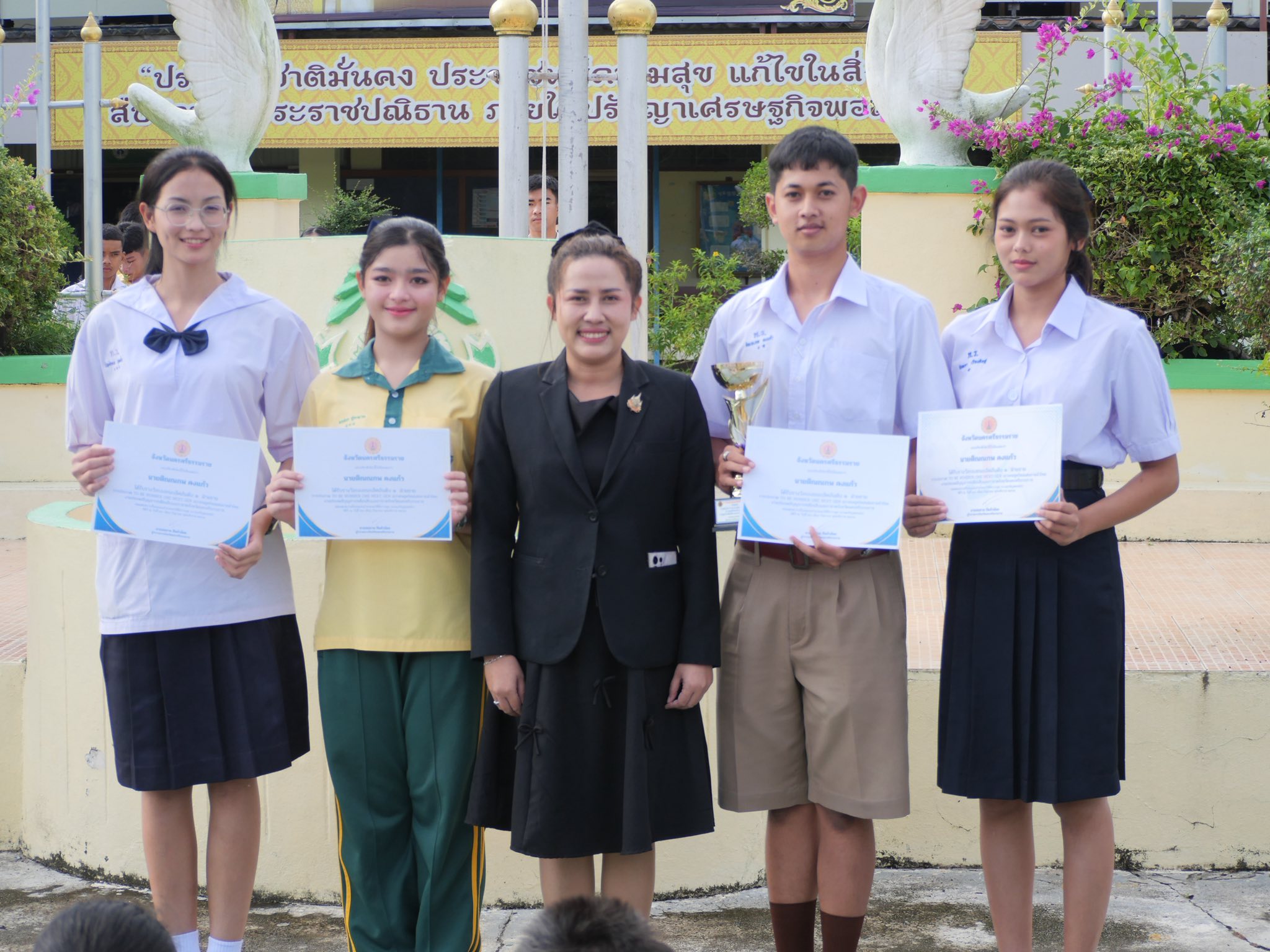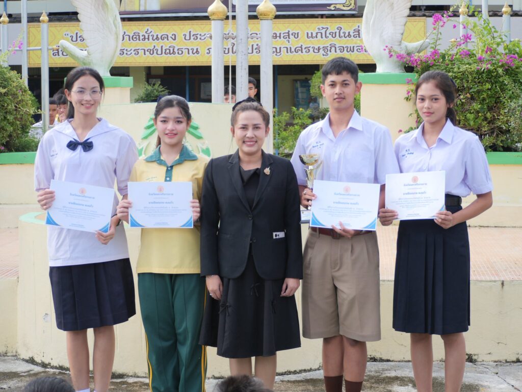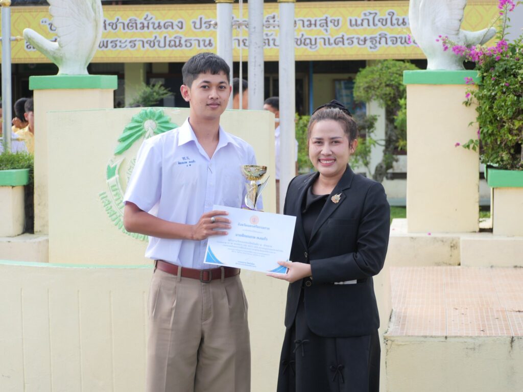 เป็นตัวแทนผู้บริหารสถานศึกษา มอบถ้วยรางวัลพร้อมเกียรติบัตรให้แก่นักเรียน