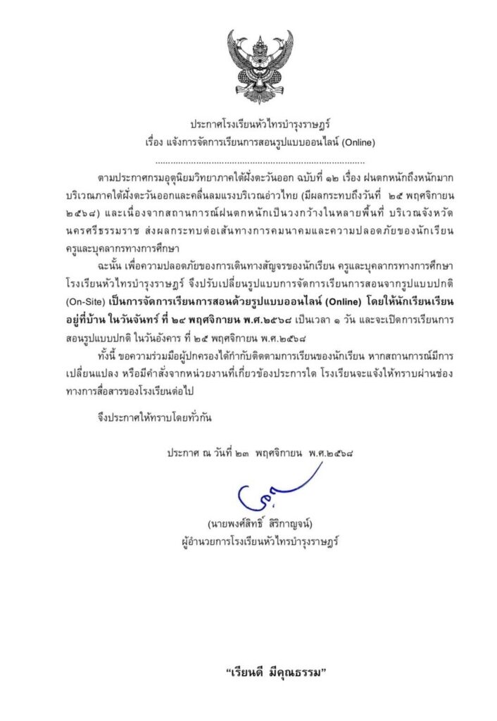 ประกาศโรงเรียนหัวไทรบำรุงราษฎร์