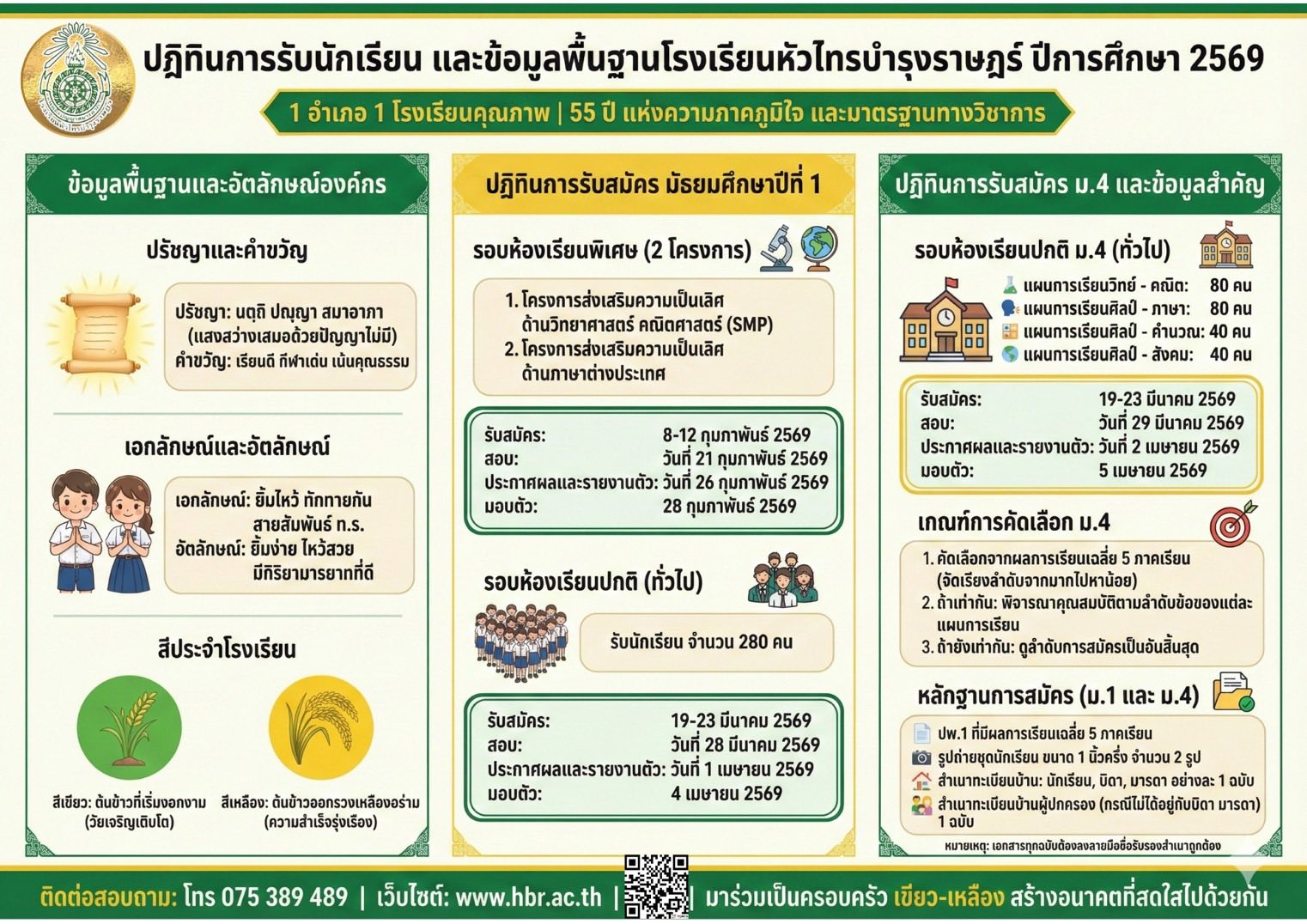 พร้อมแล้ว หรือยัง?? กับการเตรียมตัวของกิจกรรมการเปิดรับสมัครศึกษาต่อในระดับชั้นมัธยมศึกษาปีที่ 1 และระดับชั้นมัธยมศึกษาปีที่ 4 ประจำปีการศึกษา 2569 “#เลือกห้องเรียนที่ใช่แผนการเรียนที่ชอบตอบโจทย์อนาคต”มาเป็นส่วนหนึ่งและเป็นครอบครัวหัวไทรบำรุงราษฎร์ไปด้วยกันนะครับ