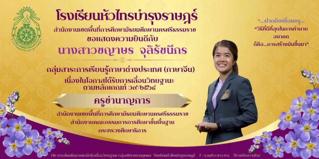 โรงเรียนหัวไทรบำรุงราษฎร์ ขอเเสดงความยินดีกับ