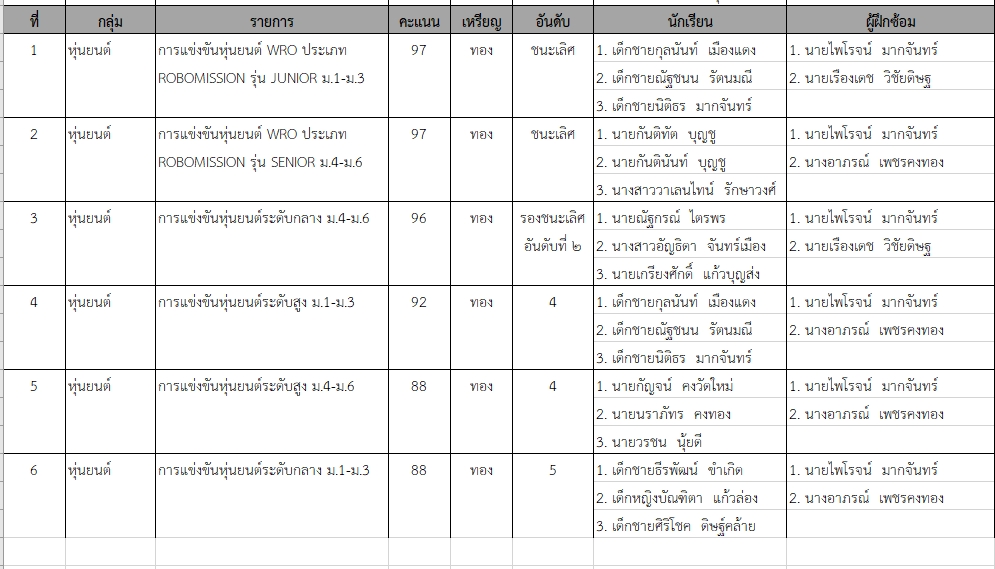 กับทักษะการแข่งขันหุ่นยนต์ ทักษะการแข่งขันการสร้างโปรแกรม และทักษะวิชาการทางคอมพิวเตอร์
