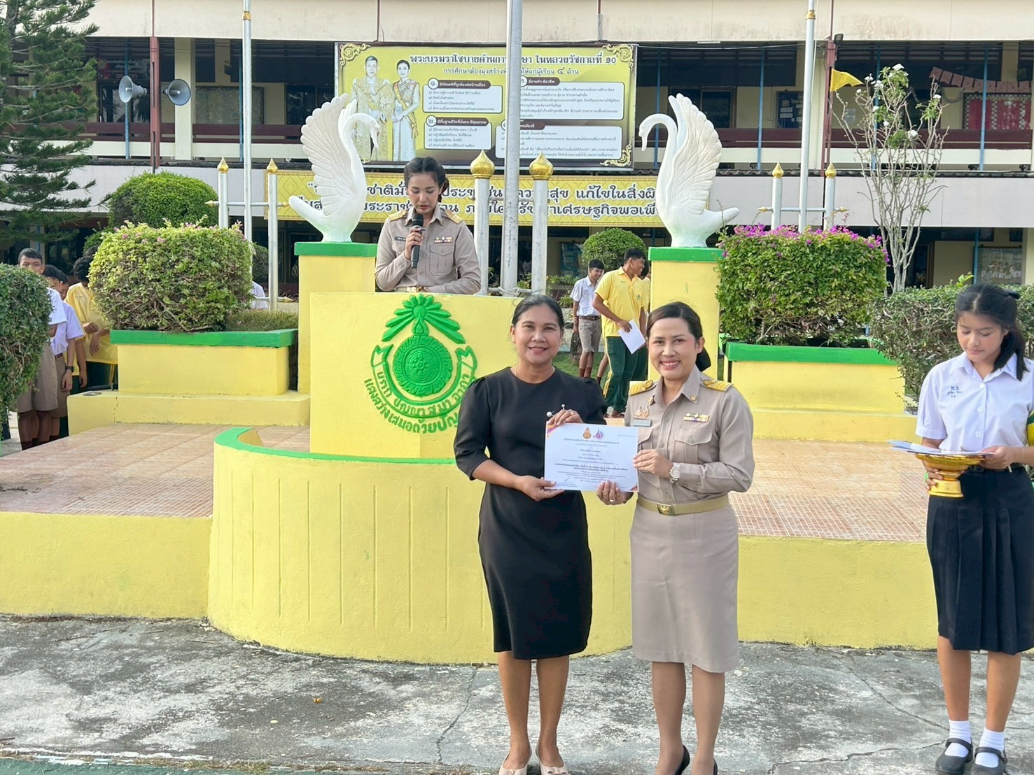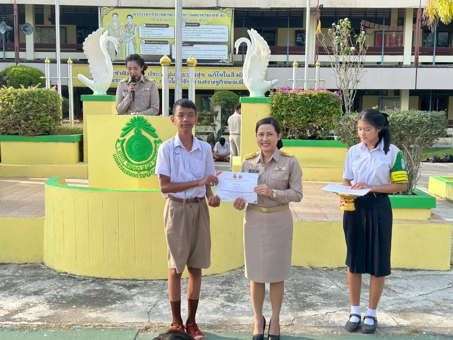 วันที่ 5 กุมภาพันธ์ 2569 โดยนางสาววลิดา เชาว์ใฝ รองอำนวยการกลุ่มบริหารงานบุคคลและกลุ่มบริหารกิจการนักเรียนเป็นตัวแทนผู้บริหารมอบเกียรติบัตรให้กับนักเรียนและคุณครูผู้ฝึกสอน