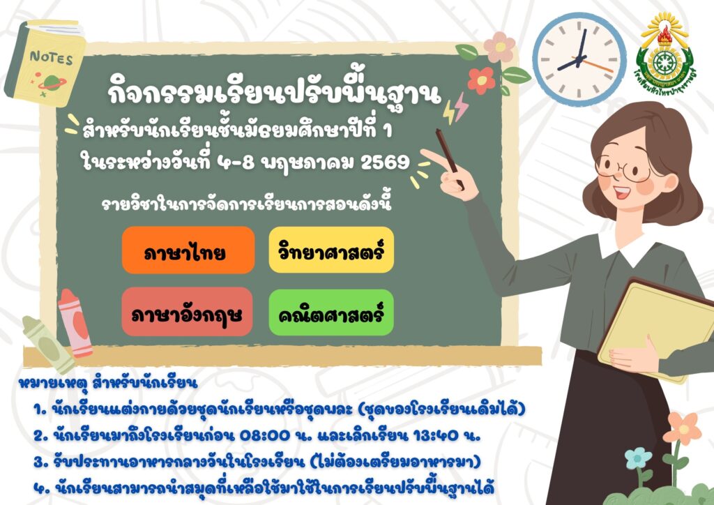 ข่าวประชาสัมพันธ์รายละเอียดการมอบตัวนักเรียน ชั้นมัธยมศึกษาปีที่ 4 ปีการศึกษา 2569April 4, 2026April 4, 2026อ่านเพิ่มเติม