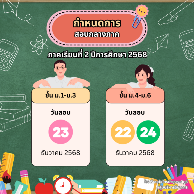 กลุ่มบริหารวิชาการข่าวประชาสัมพันธ์ตารางสอบวัดผลปลายภาค ภาคเรียนที่ 1/2568September 9, 2025September 9, 2025อ่านเพิ่มเติม