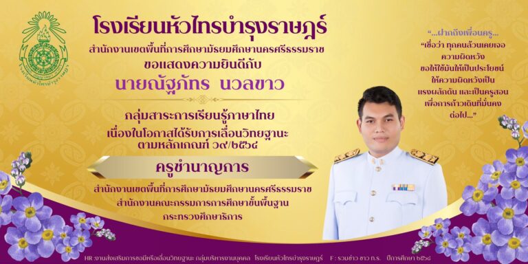 กลุ่มบริหารงานบุคคลกลุ่มสาระการเรียนรู้สุขศึกษาและพลศึกษาข่าวประชาสัมพันธ์รางวัลแห่งความภาคภูมิใจขอแสดงความยินดีกับ คุณครูจเร บุญชูช่วย เนื่องในโอกาสได้รับการเลื่อนวิทยฐานะเป็น ครูชำนาญการOctober 27, 2025October 27, 2025อ่านเพิ่มเติม