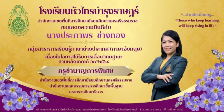 กลุ่มบริหารงานบุคคลกลุ่มสาระการเรียนรู้ภาษาต่างประเทศข่าวประชาสัมพันธ์รางวัลแห่งความภาคภูมิใจขอแสดงความยินดีกับคุณครูประภาพร ช่างทองเนื่องในโอกาสได้รับการเลื่อนวิทยฐานะเป็น ครูชำนาญการพิเศษOctober 27, 2025October 27, 2025อ่านเพิ่มเติม