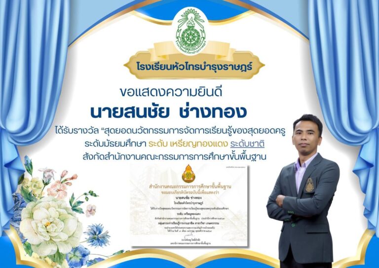 ขอแสดงความยินดี กับนายสนชัย ช่างทอง ได้รับรางวัล “สุดยอดนวัตกรรมการจัดการเรียนรู้ของสุดยอดครู ระดับมัธยมศึกษา ระดับเหรียญทองแดง ระดับชาติFebruary 5, 2026February 5, 2026อ่านเพิ่มเติม