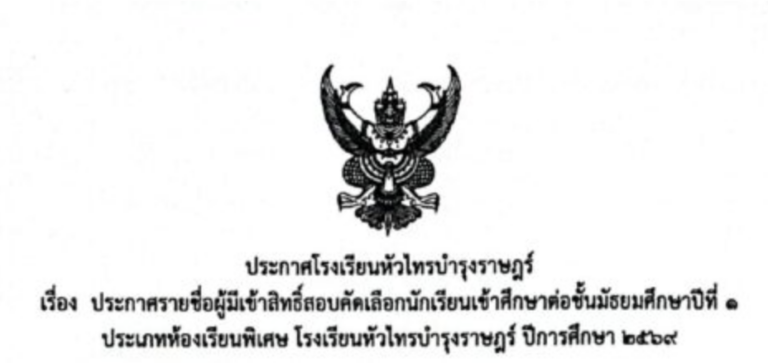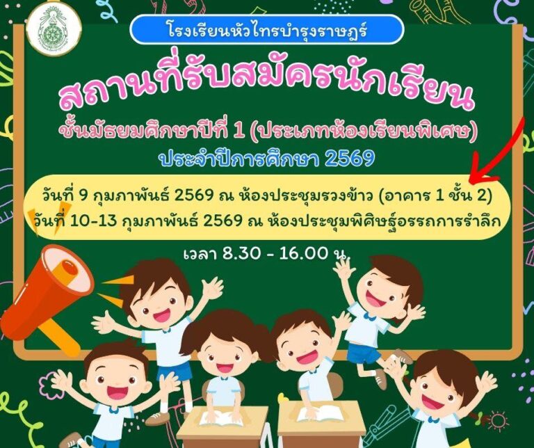 ประกาศโรงเรียนหัวไทรบำรุงราษฎร์ เรื่อง การรับสมัครนักเรียนเข้าศึกษาในระดับชั้นมัธยมศึกษาปีที่ 1 และ ระดับชั้นมัธยมศึกษาปีที่ 4 ประเภททั่วไป ปีการศึกษา 2569March 14, 2026March 17, 2026อ่านเพิ่มเติม